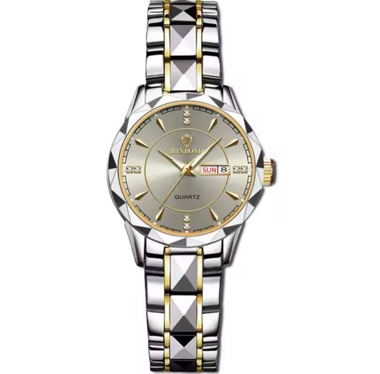 Binbond Dameshorloge Quartz 36mm Zilver & Goud Grijs