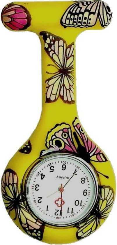 Fako Print Quartz Vlinder Geel Siliconen RVS
