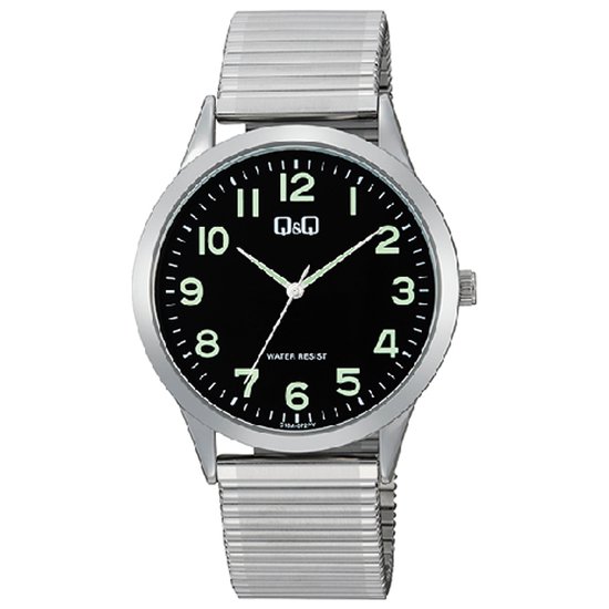 Q&Q C11A-015PY Quartz Zwart Metaal Leren Band