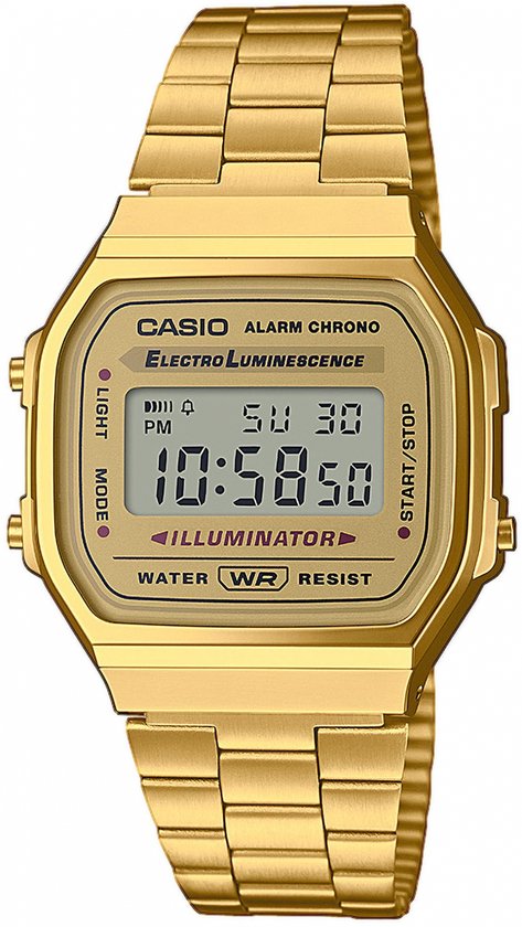 Dit Casio dameshorloge heeft een goudkleurige afwerking en een kastdiameter van 27,8 mm. Het horloge is voorzien van een digitaal display en een vintage ontwerp, geschikt voor dagelijks gebruik.