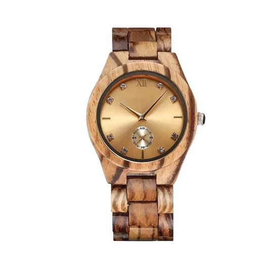 Houten Dameshorloge Automatisch Gouden 36mm Met Diamonds