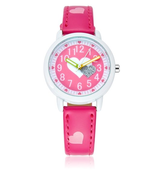 Horloge Hartjes Quartz 36mm Donker Roze Leren Bandje